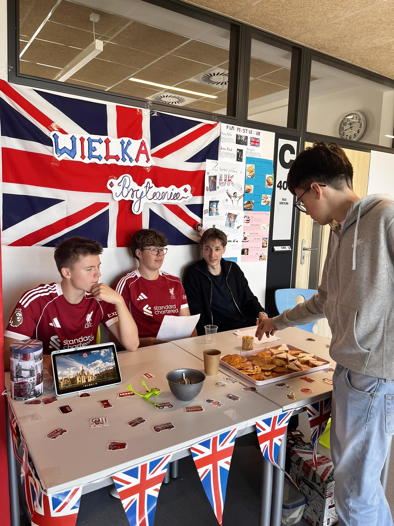 26.09.2025 tradycyjnie obchodziliśmy Dzień Języków Obcych. Klasy wylosowały kraje, przygotowały stanowiska i quizy. Było dużo zabawy, pysznych przekąsek i napojów i oczywiście wszechobecnej kultury europejskiej.