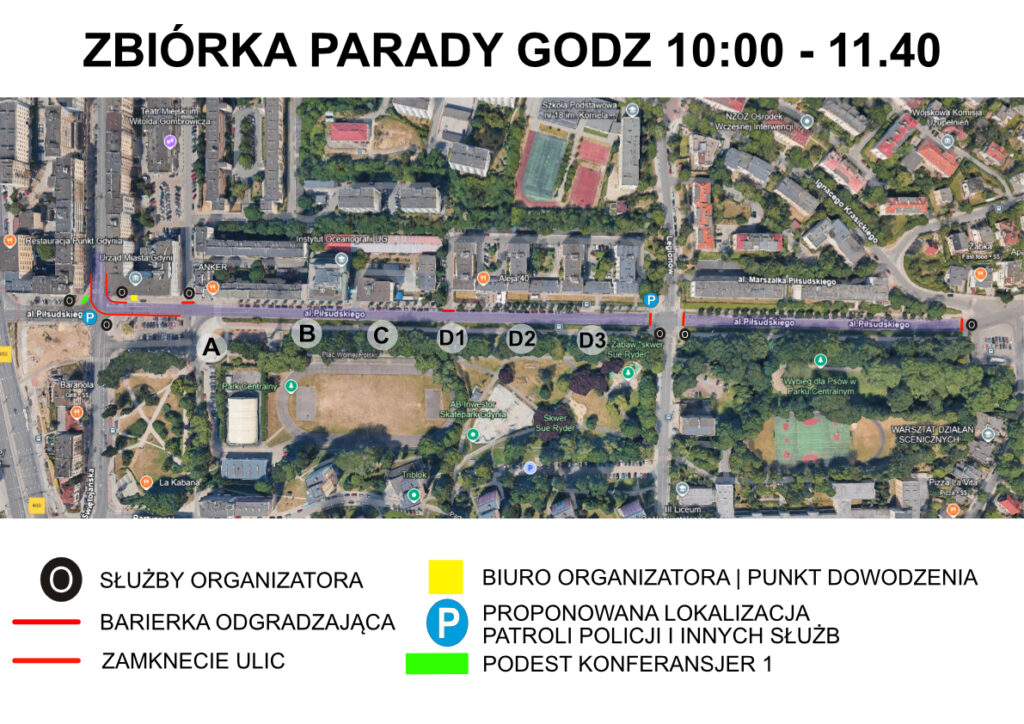Zbiórka: od 10:00 do 11:40, przy al. marsz. Józefa Piłsudskiego, pomiędzy ulicami Bema a Legionów, zgodnie z naszym sektorem D3