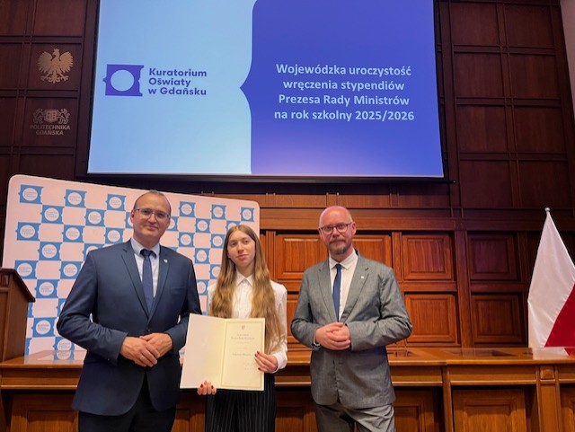 Z ogromną dumą informujemy, że nasza uczennica Małgorzata Wyrębska otrzymała Stypendium Prezesa Rady Ministrów. Rozdanie nastąpiło podczas uroczystej Gali na Politechnice Gdańskiej.